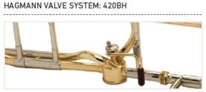 .547 bore, 8.5″ – one piece yellow brass bell, yellow brass outer slides with nickel sleeves, clear lacquer finish. Open wrap F attachment, standard rotor with mini ball linkage, adjustable thumb trigger. Comes in a lightweight contoured case.